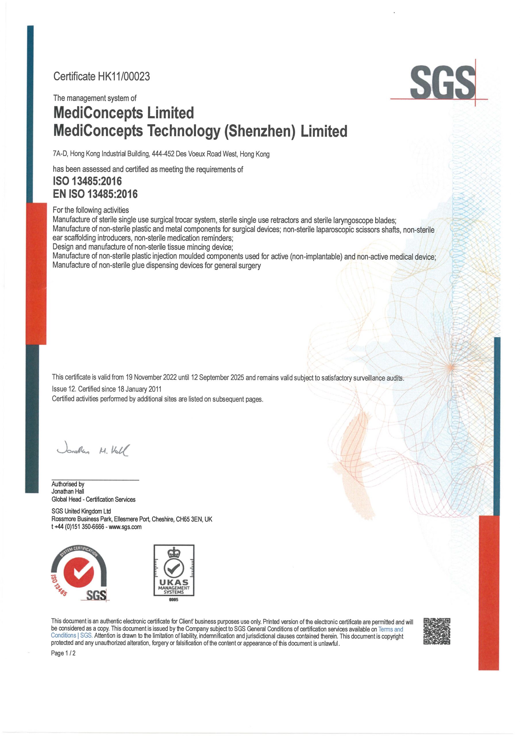 Mediconcepts is ISO13485:2016 certified. Our certifcate and permitted scopes can be downloaded here.